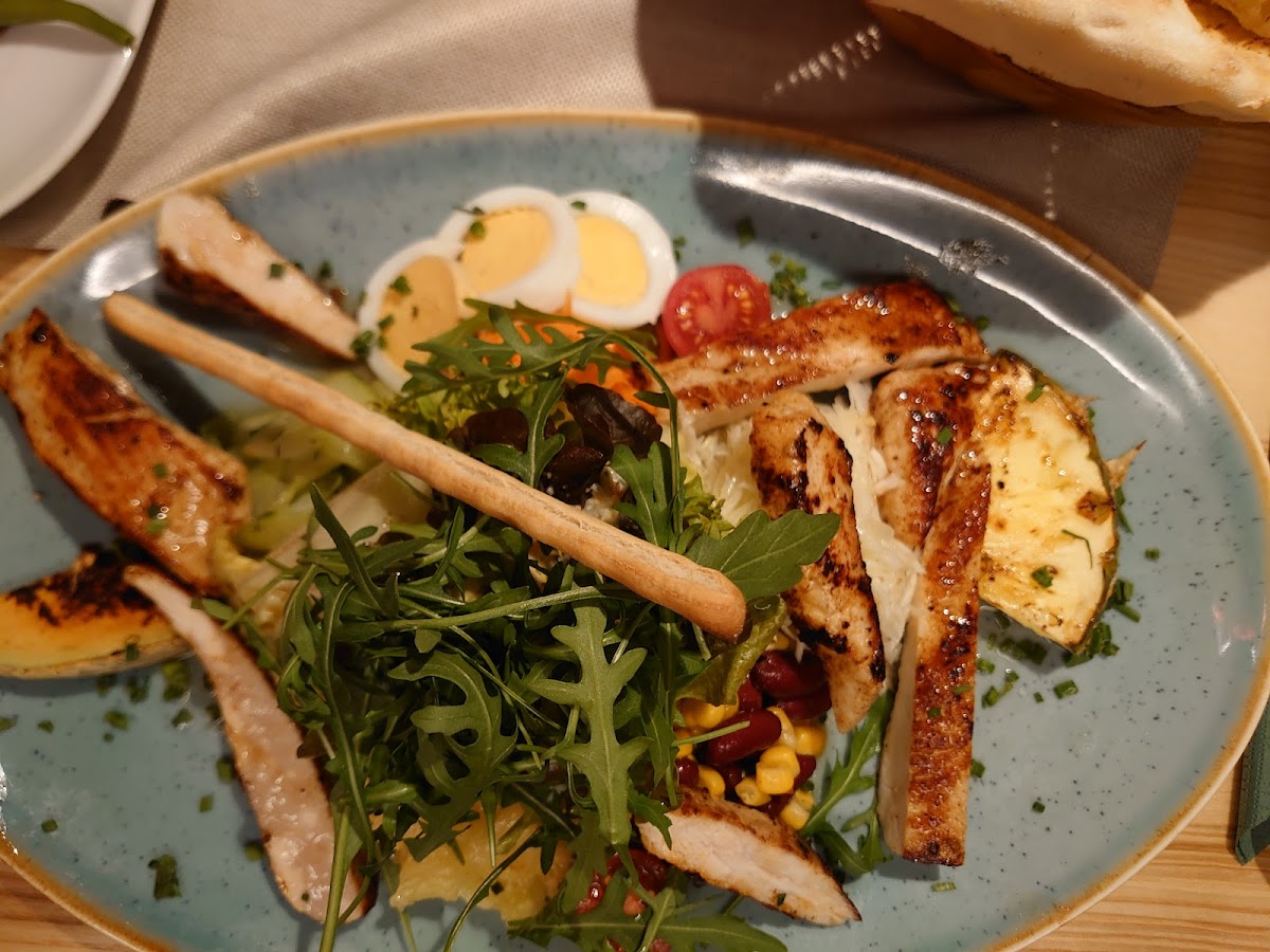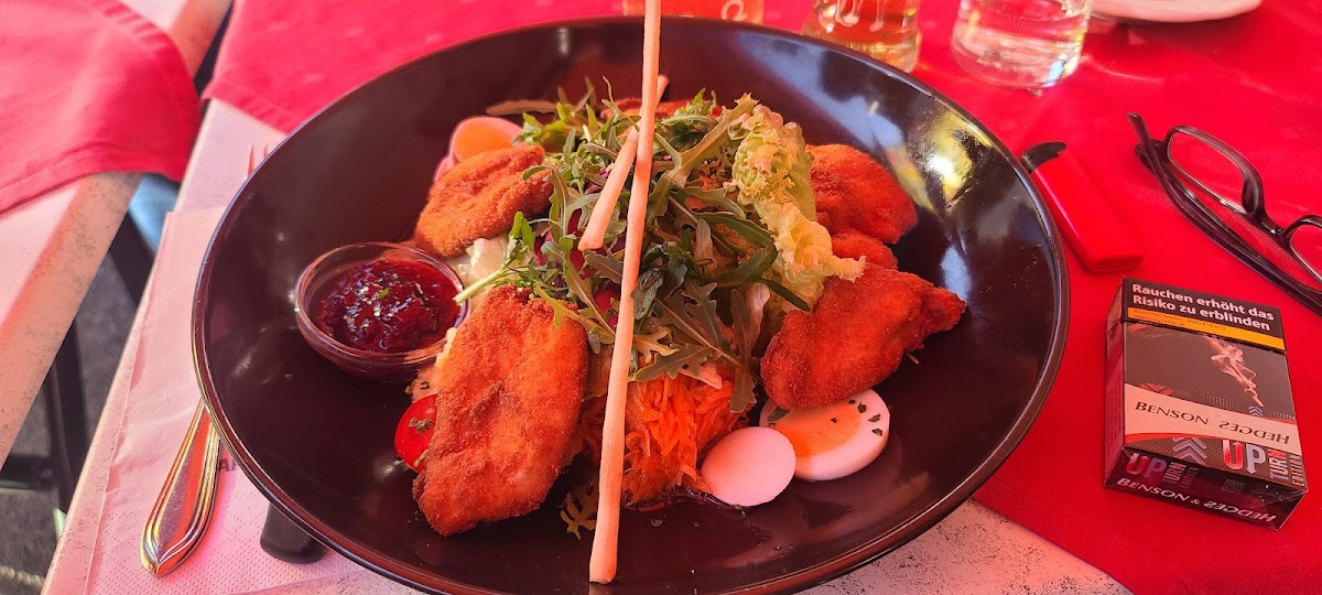 One of the restaurant’s standout dishes is the Salatpizza. It’s a unique fusion that combines the lightness of a salad with the satisfying crunch of a pizza crust. It’s perfect for those who crave something fresh yet filling. Another must-try is the Backhendlsalat, a crispy chicken salad that blends perfectly with the savory dressing and fresh vegetables. If you're in the mood for something heartier, the Gemischter Salat mit Hühnerbrust (mixed salad with chicken breast) is a great option, offering a balanced and tasty combination of flavors.